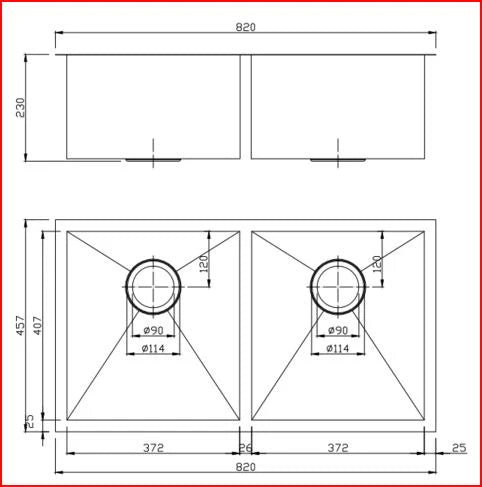 (C-820 Black)Round Corner Stainless Steel Gun Metal Grey PVD Coating Double Bowl Kitchen Sink(with Bottom Grid) 820*457*230mm