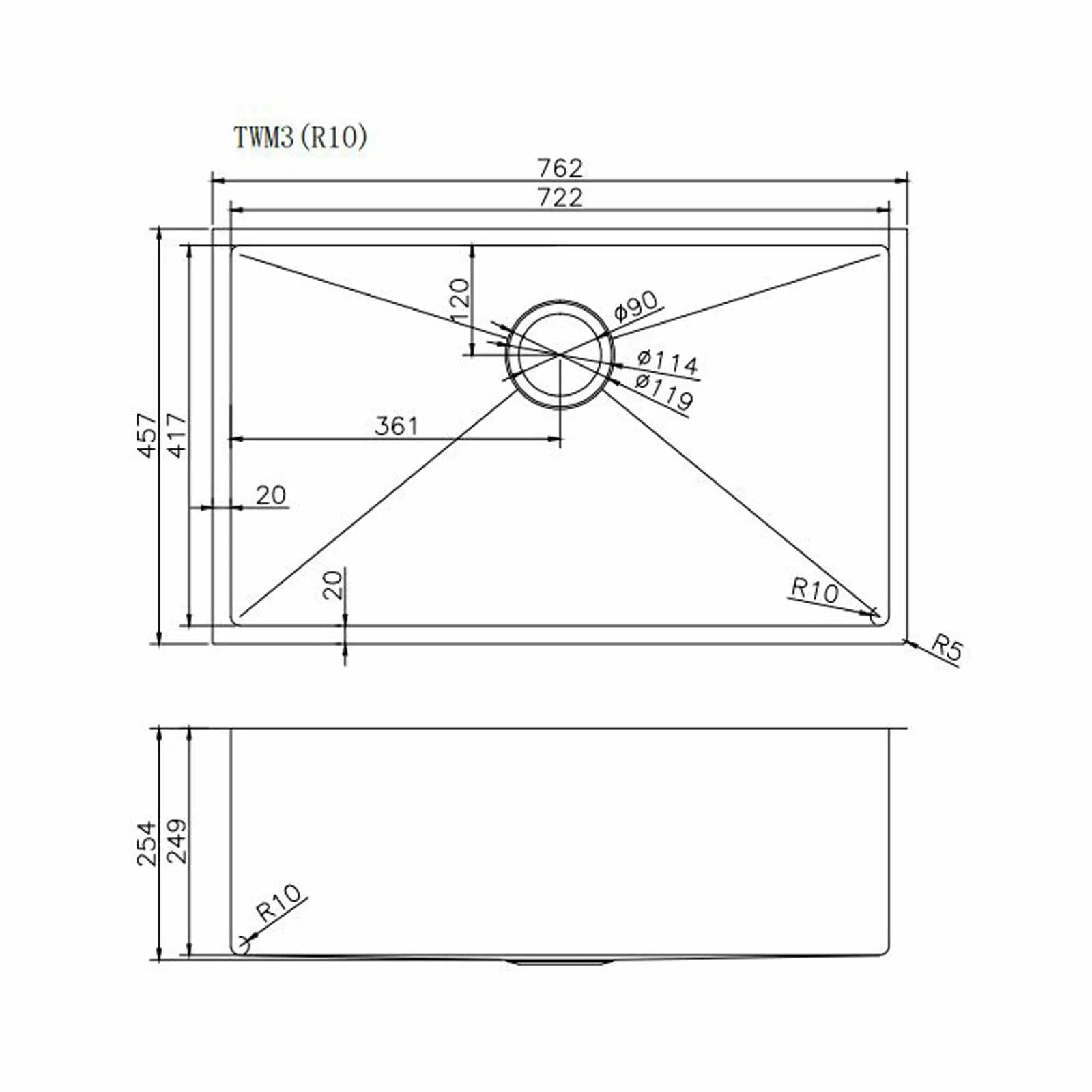 Stainless Steel Kitchen Sink TWM3
